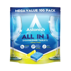 Astonish Dishwasher Tablets Lemon 100 Pack provide powerful all in one cleaning for sparkling dishes with every wash. Designed to tackle grease, dried food and stubborn tea and coffee stains, these tablets help leave crockery, glassware and cutlery brilliantly clean without the need for pre rinsing.