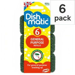 Dishmatic General Purpose Green Refill Sponges Cleaning Scourer, 6 Pack