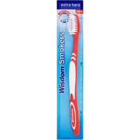 The Wisdom Smokers Extra Hard Toothbrush is meticulously crafted for smokers seeking a thorough cleaning solution aimed at combating tough stains and plaque build-up associated with smoking. With its extra hard bristles, this toothbrush ensures effective removal of stubborn debris, promoting superior oral hygiene and contributing to a brighter, healthier smile. The ergonomic handle is designed for comfort and provides excellent control during brushing, making it an essential tool for maintaining oral health.